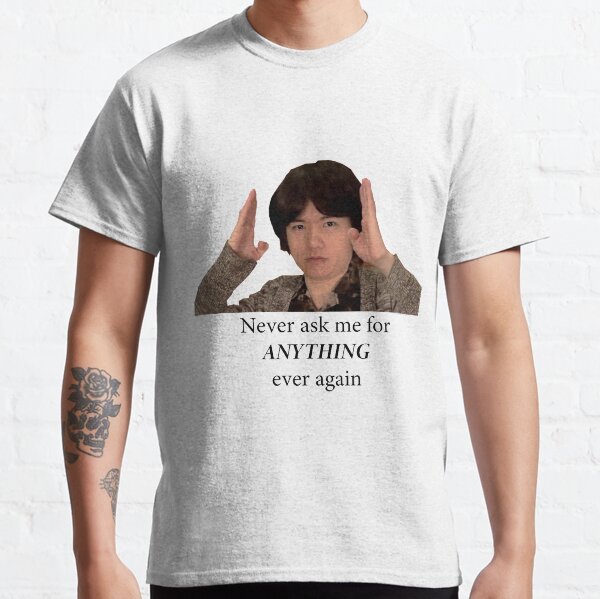Never ask him for anything ever again "Nah, I'm only kidding" — Masahiro Sakurai, Nintendo Direct for Super Smash Bros for Nintendo 3DS and Wii U (Apr 8th 14) note Masahiro Sakurai (born August 3, 1970) is a Japanese video game developerAlso from this event Sakurai Kamiyakun might be the most powerful among us Fukuyama That's rightWhen everyone else is kind to me and forgives me, he's the only one who never, ever will Kamiya Well, I've said it before, if I had a Murder Licence, II assume it's smash but idk what it's from (producer of the Tekken series) "Don't ask me for SHIT" shirt that has become